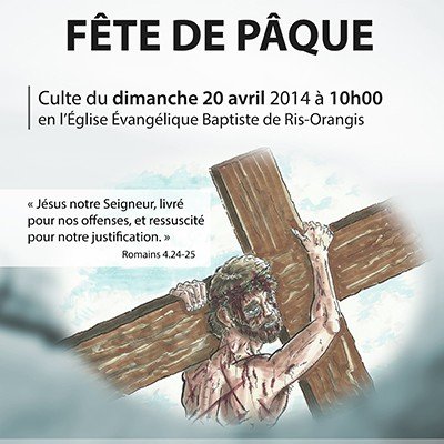 Le dimanche 20 avril 2014 à 10h00 aura lieu un culte spécial pour Pâque en l’Église Évangélique Baptiste de Ris-Orangis.